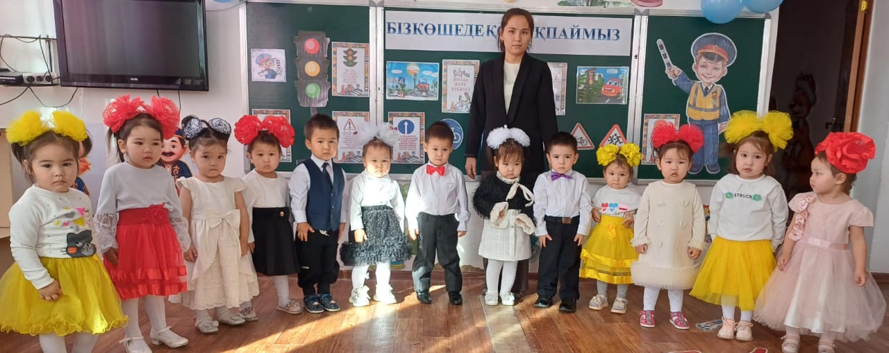 Мақсаты:Балаларға жолда жүру ережелерін меңгерту, көшеде өзін қауіпсіз ұстау дағдыларын қалыптастыру.