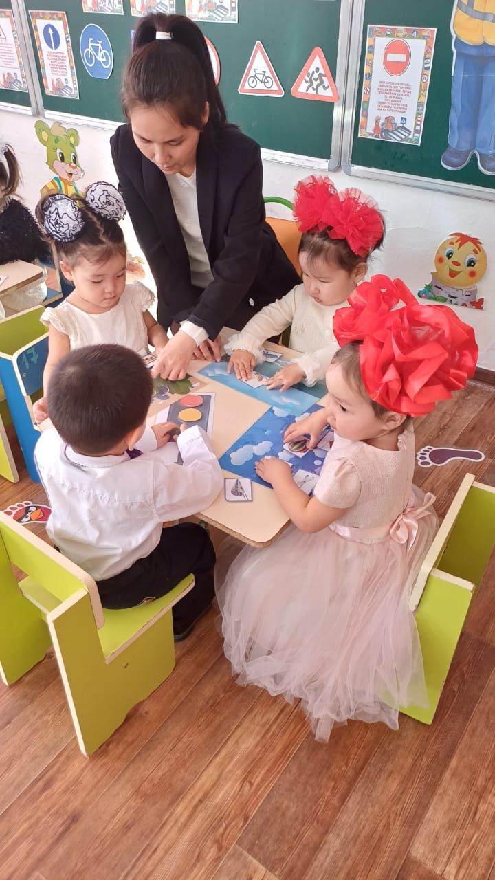 Балалармен педагог жетекшілігімен ойын: " Ойлан,тап ", " Бағдаршам " " Пішіндерді құрастыр " ойындары ойнатылды. Балалар жолда жүру ережелерімен танысып, бағдаршам түстерімен танысып ұйымдастырылған іс-әрекетті қорытындылады.