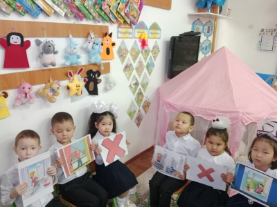 Тәрбиеленушілерде әр түрлі жағдайларда олардың қауіпсіздігін қамтамасыз ету үшін қажетті білім мен дағдыларды қалыптастыру, ықтимал қауіптерді тану және оларға дұрыс жауап беру қабілетін дамыту. Ұйымдастырылған іс-әрекет барысында балалар арасында тақырыпқа байланысты шаралар ұйымдастырылды. Балалармен дидактикалық: "қауіпсіз терезелер", "Болады болмайды ойындары ойнатылды. Ойындар барысында балалар өзін өзі қорғау дағдыларын, қауіпті жағдайда жылдам әрекет ету дағдыларын, жауапкершілікті тану дағдыларын меңгерді. Балалар ұйымдастырылған ойындарға белсенді қатысып, өз эмоцияларын білдірді. Мектепалды даярлық "Бөбек" Тобы