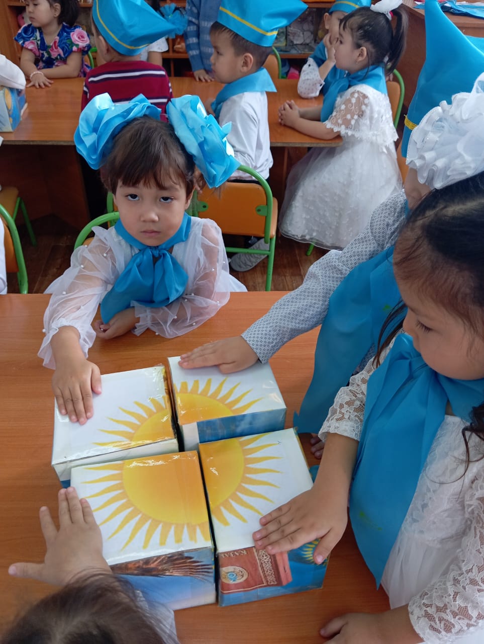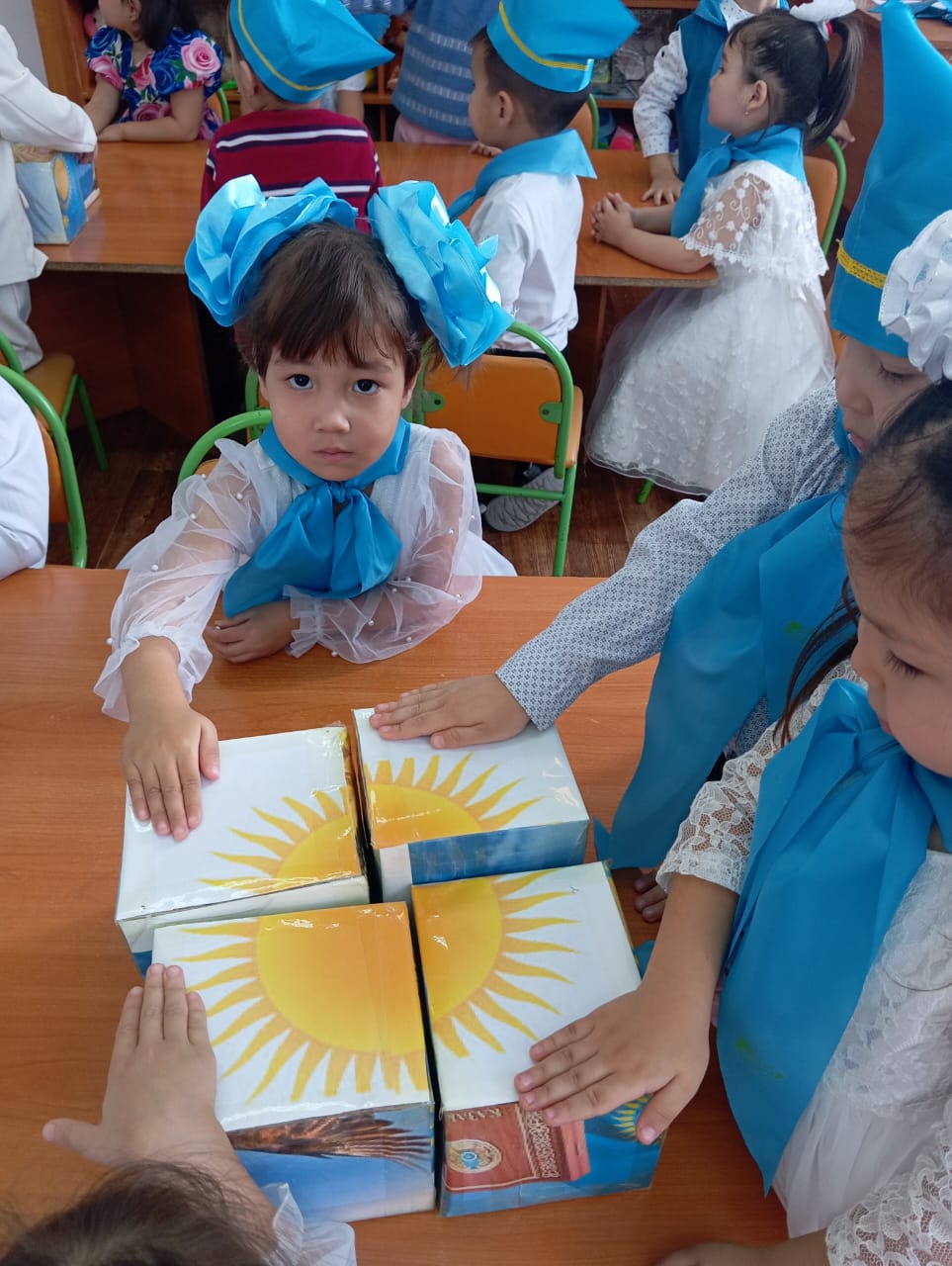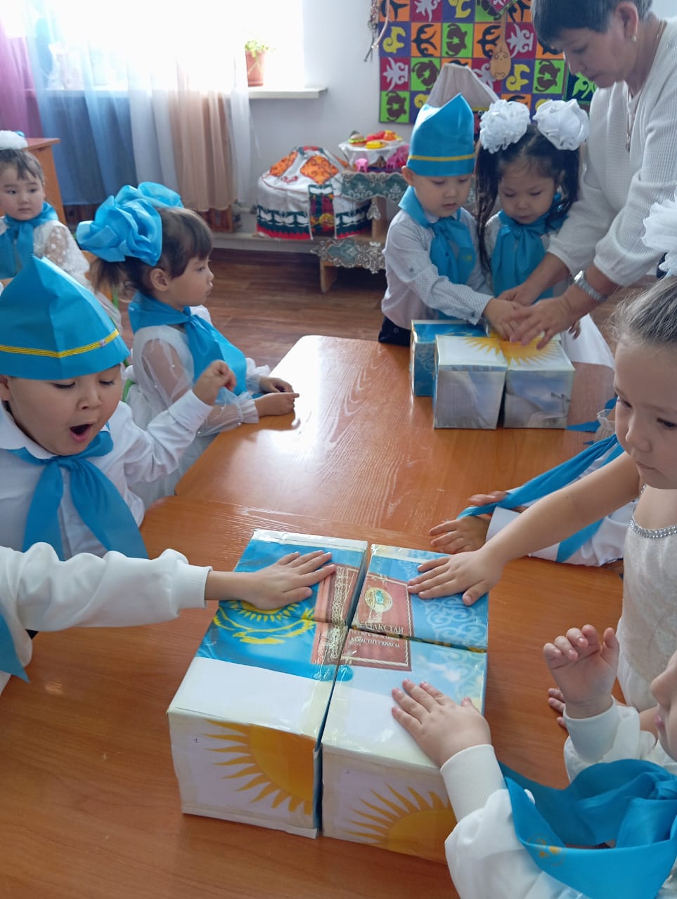 Мақсаты: Балаларды Отанды сүюге,Қазақстан Республикасының рәміздерін қастерлеуге,туған жерге сүйіспеншіліктерін арттыруға тәрбиелеу.Сөйлеу мәнерін қалыптастырып,қойылған сұрақтарға дұрыс,толық жауап беруге дағдыландыру.