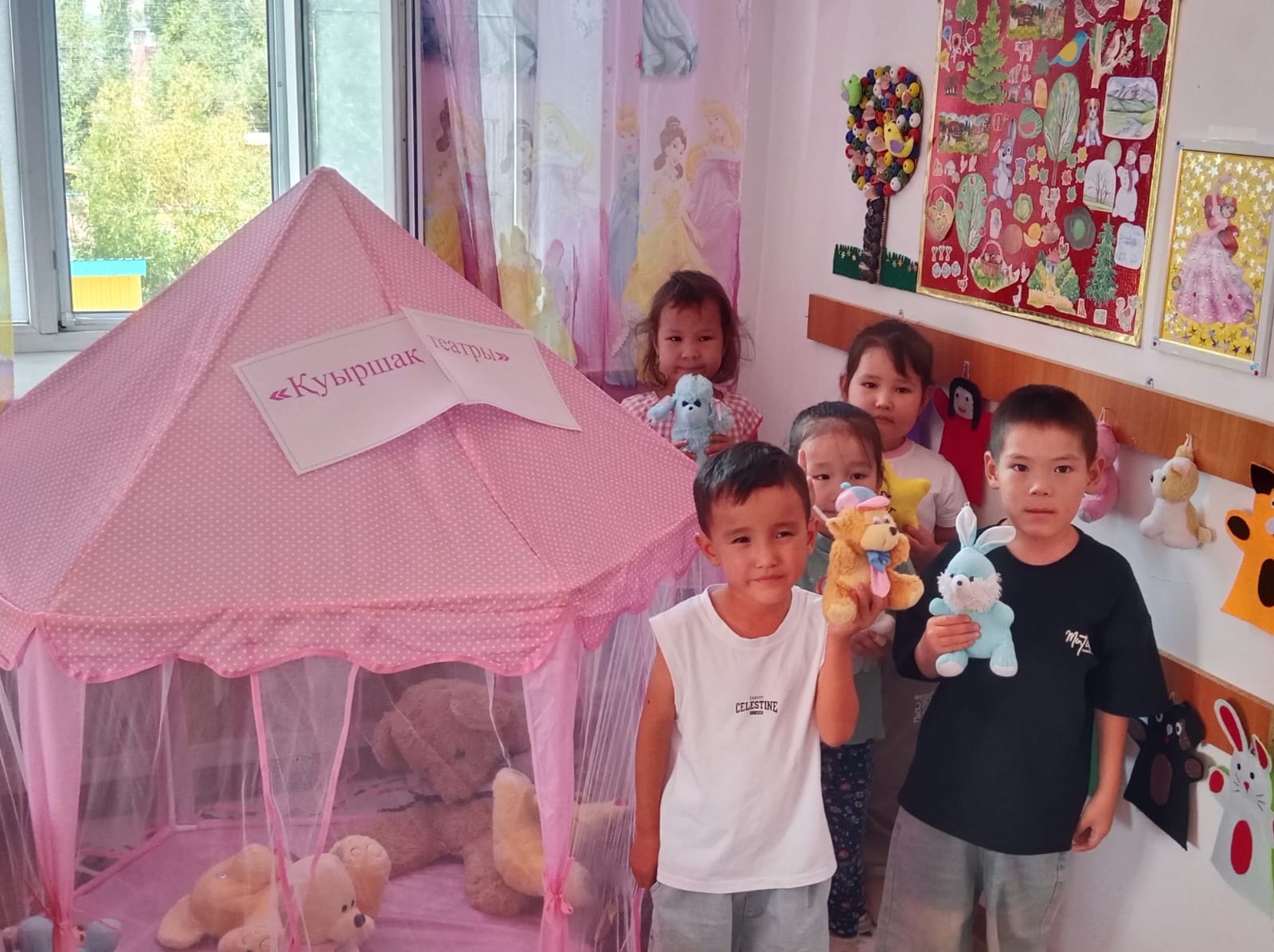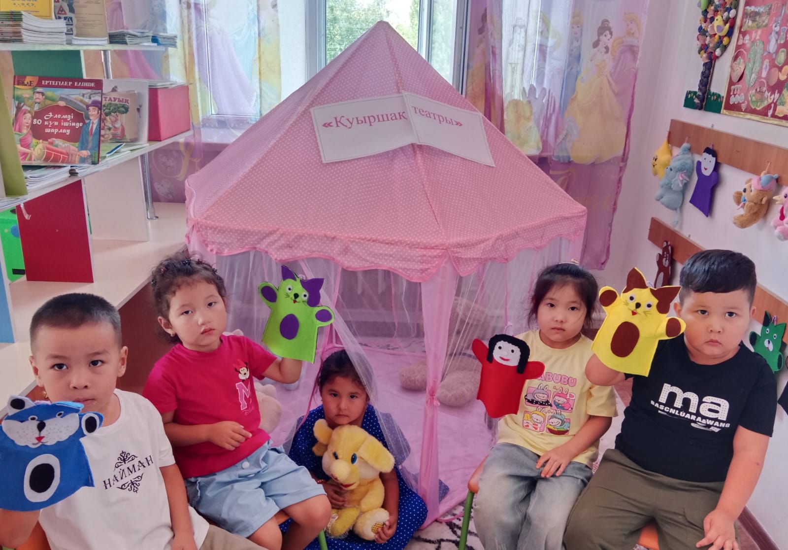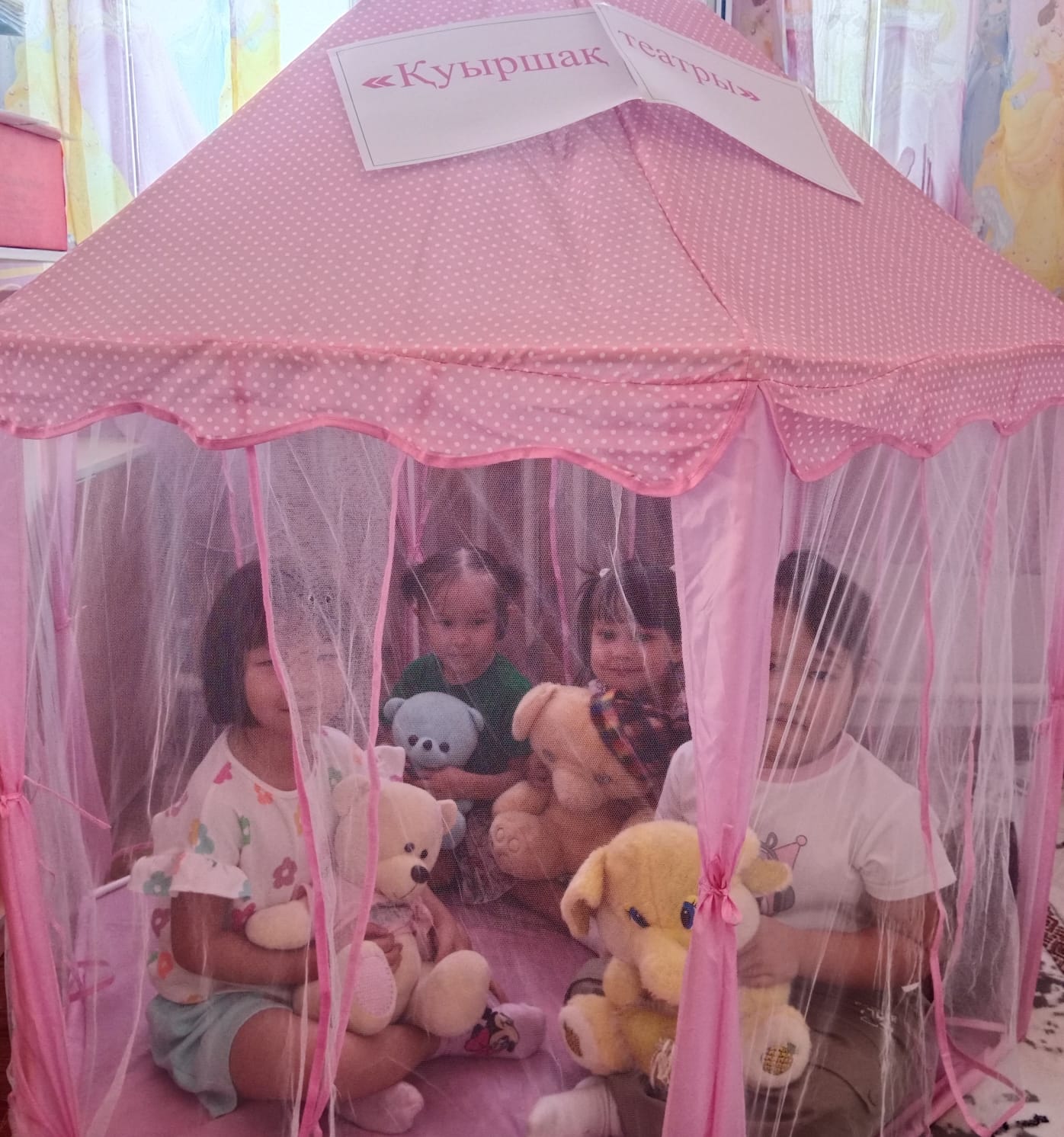 Мақсаты: Балалардың театр әлеміне деген қызығушылығын дамыту,әдеби шығармаларды эмоционалды қабылдануына ықпал ету.
